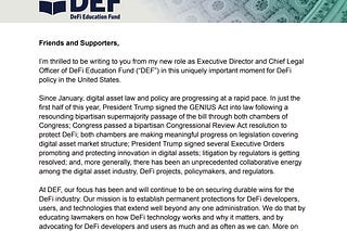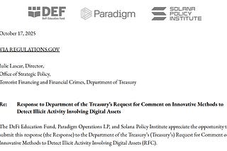 Week of November 3, 2025: DEF and SPI File Comment Letter to Treasury on GENIUS Act Implementation; DEF's DeFi and Dim Sum Event; New DEF Brand and…