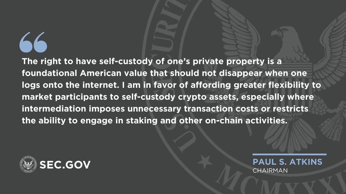SEC Chairman Paul Atkins opened the event stating, “American values of economic liberty, private property rights, and innovation are in the DNA of DeFi.” Atkins signaled a bright future for DeFi, and gave a strong endorsement of self-custody rights.